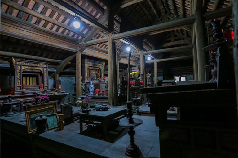Không gian thờ tự trong nhà cổ ở làng Đường Lâm (Sơn Tây). Ảnh: VNE
